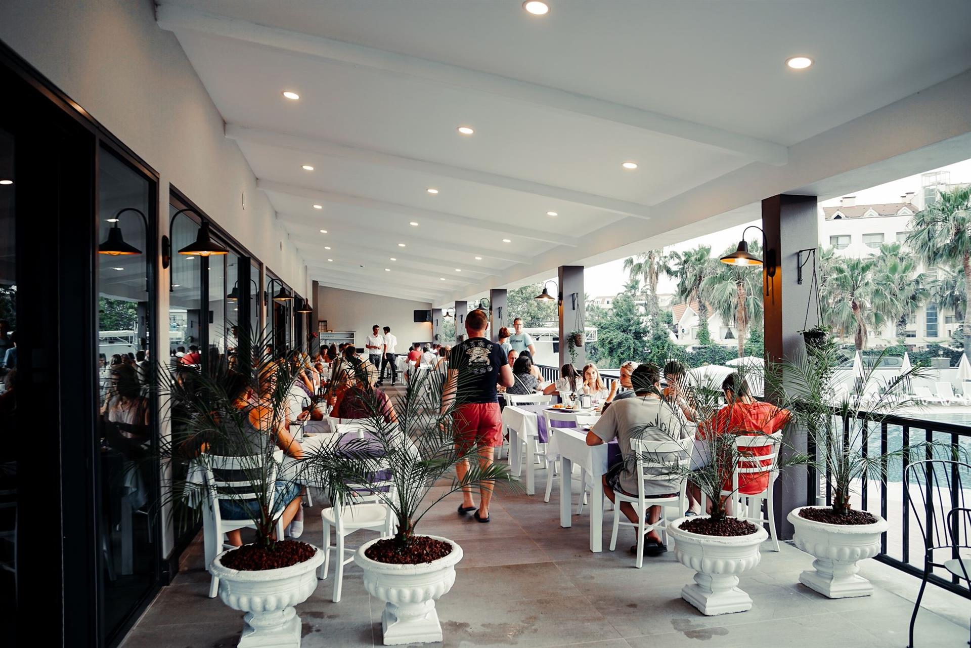 - 1 fő étterem - beltéri rész 150 fő részére, szabadtéri terasz 75 fő részére